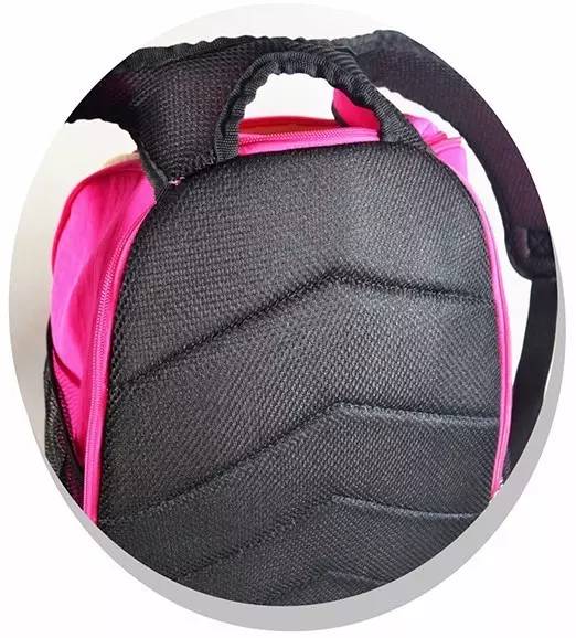 整個(gè)背部墊有減沖棉,貼合人體設(shè)計(jì),背部貼合三文治網(wǎng)布更透氣